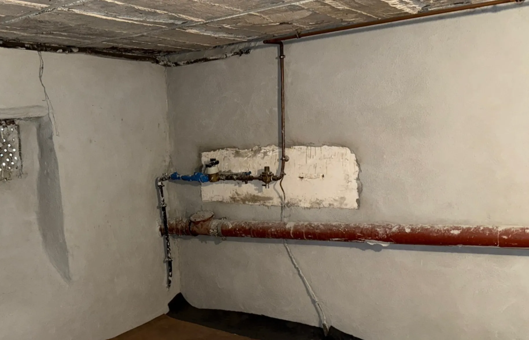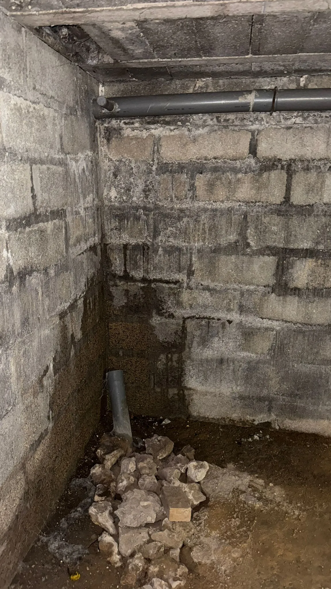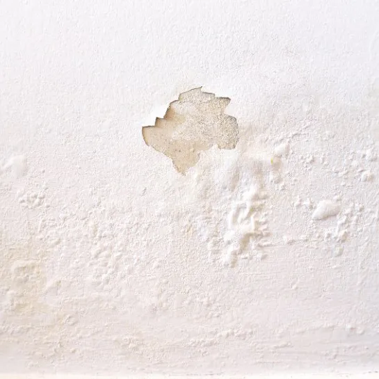 Taches sombres, papiers peints qui se décollent ou enduits qui s'effritent au bas des murs.