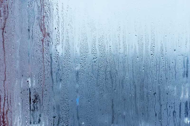 Buée persistante sur les vitres, sensation de froid, gouttelettes d'eau et air vicié.